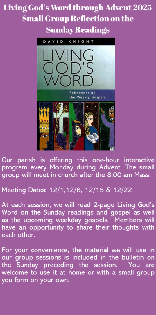 The reenactment of the Nativity story will begin in Church at 5:00 pm. A narrator will tell the story which will be portrayed by parishioners of all ages through mime and gesture.